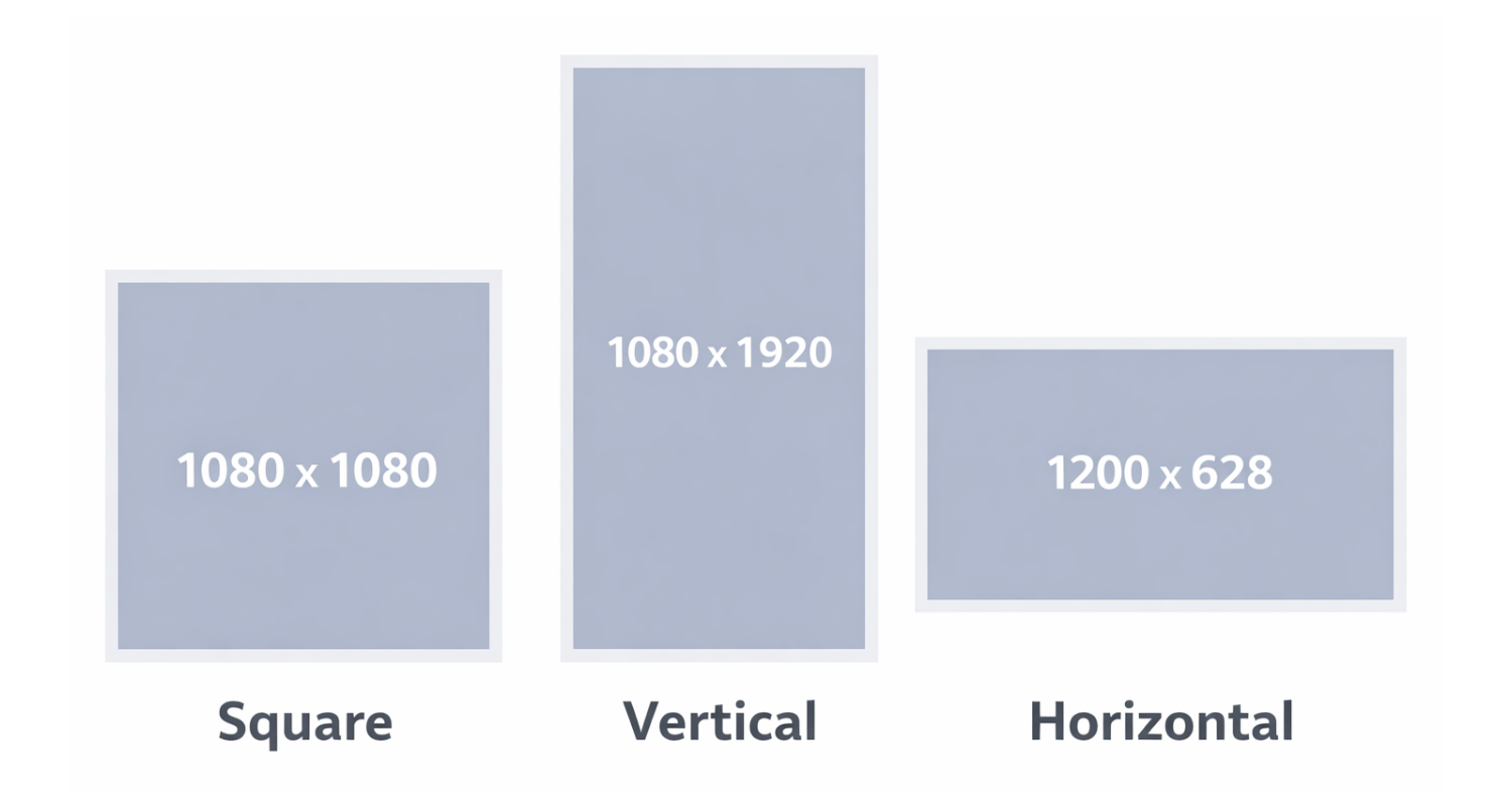 Vertical (9:16) is especially important, as Meta increasingly prioritizes immersive, full-screen placements.
